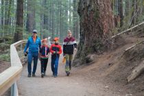 Nach dem Frühstück ging es wieder einmal an das Zusammenpacken unserer Zelte. Dann fuhren wir Richtung Süden von VancouverIland. Eigentlich wollten wir bis ChinaCreek, doch Larry hatte uns LittleQualicumFalls empfohlen. Da dies auch näher zur Fähre ist und wir dadurch am Dienstag nicht ganz so früh raus müssen, haben wir den dortigen Campingplatz angesteuert. Allerdings mußten wir vorher noch Gaskartuschen kaufen. Volker seine ist gestern Abend noch leer geworden und bei meiner ist auch nicht mehr viel drin. Ich hab gedacht, die reichen ewig.... In CampbellRiver gab es schon mal keine im großen WallMart und auch nicht in einem Outdoor-Laden. Also haben wir unterwegs noch einen Abstecher nach Courtenay gemacht, wo wir tatsächlich welche bekammen. Der Zeltplatz hier in LittleQualicumFalls ist super. Die Stellplätze im Wald verteilt und alle, wie hier üblich, mit Tisch und Bänken ausgestattet. Nachdem wir die Zelte aufgebaut haben, sind wir zu den nahe gelegenen Wasserfällen gelaufen. Dort war es auch super. Hätte die Sonne geschienen, wäre es aber perfekt gewesen. Da wir noch Zeit hatten, ging es nun mit dem Auto noch zu CathedralGrove. Die dortigen Bäume sind teilweise bis zu 300 Jahre alt. Der dickste und größte Baum ist 75 Meter hoch. Das war dort so richtig wie im Urwald. Rießige Baumstämme lagen bemosst auf dem Waldboden, andere wieder quer darüber. Da wir aber unbedingt noch mal ins Wasser springen wollten, sind wir zu einem Badeplatz des CameronLake gefahren. Allerdings waren wir nicht lang im Wasser, war doch etwas kalt. Nun ging es wieder zum Zeltplatz und der übliche Ablauf begann. Kochen, essen, Jungs ins Bett bzw. in den Schlafsack.