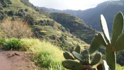 Da es bei meinem Aufbruch hier erst so gegen 12:00 Uhr war und Funchal auf der Strecke zurück lag, entschloss ich mich, noch eine Wanderung anzuhängen. Und zwar von Monte, oberhalb von Funchal liegend, zum Botanischen Garten "Jardim Botanico". In Monte kam ich dann am Anfang auch an der Stelle vorbei, wo die Korbschlittenfahrten starten. Eine besondere Attraktion, bei welcher die geübten Fahrer die Touristen in diesen Schlitten eine steile Straße hinab fahren. Auch hier war eine ziemlich lange Warteschlange, aber ich hatte sowieso nicht vor, das mit zu machen. Dafür ging es weiter an den Bergstationen der Seilbahn beim Tropical Garden und etwas später der Seilbahn aus dem Jardim Botanico. Irgendwann ging es weiter auf der Levadados Tornos, bis ich diese verlies, um auf einer kleinen Straße steil bergab zum botanischen Garten zu gelangen. Das war das anstrengendste Stück da runter. Der Jardim Botanico selbst war auch sehr schön, vor allem für mich wieder die Kakteen. Mit der Seilbahn ging es dann gemächlich wieder nach oben. Und somit beendete ich meine heutigen Ausflüge.