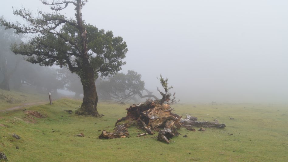 Heute musste ich meine Pläne auch wieder kurzfristig umdisponieren ... Eigentlich sollte es laut Vorhersage heute Vormittag vom Wetter her ganz gut aussehen. Deswegen dachte ich, versuche ich es mal mit einer Wanderung in der Mitte der Insel, also in den Bergen. Als ich aber dort war, habe ich das schnell wieder verworfen. Regen, Wind und nur 5° Celsius hatte ich nicht eingeplant gehabt. Was bedeutet, keine Handschuhe, nur kurze Hosen und dünne Regenjacke ... Also nahm ich wieder mal den Rother Wanderführer zur Hand und suchte nach einer Alternative. Diese befand sich nicht ganz so weit oben, aber immerhin noch im mittleren Nordwesten der Insel. Los ging es bei dem Forsthaus Fanal. Ein kurzes Stück die Straße zurück und dann rechts in Pfad hinab zur Levada dos Credos. Als ich aber bei dem Pfad angekommen war, war dieser auch mit rotem Absperrband und einer Tafel "closed" gesperrt! Das war mir aber jetzt sch...egal ich bin da trotzdem lang und obwohl der Pfad schon sehr nass und matschig war, war es kein Problem. Unten bei der Levada angekommen, ging es nun für längere Zeit dieser immer entlang. Auch hier war der Weg nicht immer schön und bequem, meine Wanderschuhe mussten ihre wasserabweisenden Eigenschaften mehrfach unter Beweis stellen. Aber es war auch kein einziges Mal gefährlich. Nach einiger Zeit verlies ich die Levada, um auf einem weiteren Pfad, vorbei an einem Rastplatz wieder Richtung Forsthaus zu wandern. Während dessen schaffte es sogar auch mal die Sonne, sich blicken zu lassen. An der Straße angekommen, ging es nun aber nicht auf dieser zurück zum Forsthaus, sondern es ging auf einem Forstweg zu dem kleinen See Lagoa. Hier eröffnete sich eine fast mystisch anmutende Landschaft. Der kleine See stark bewachsen, dahinter eine große Wiese, auf welcher zuerst nur vereinzelt die bizarren Stinklorbeerbäume standen. Und das Ganze in Nebel gehüllt! Das ergab natürlich etliche Motive für den Foto. Um so weiter ich vom See Richtung Forsthaus lief, füllte sich allerdings auch die Gegend mit immer mehr Touristen, welche eben auch diese Bäume fotografieren wollten und auf eine Anhöhe pilgerten, um vielleicht die Nordküste zu sehen. Das habe ich mir aber erspart, denn bei dem Nebel hat man garantiert nix gesehen. Auf jeden Fall war ich nach ca. 3,5 Stunden und 10km wieder zurück am Auto. Heute Abend hatte ich übrigens mal wieder geschaut, wie die Lage mit den Sperrungen ist. Scheinbar sind nun doch einige Wanderwege wieder offen- ob ich es morgen noch einmal mit der Halbinsel versuche?