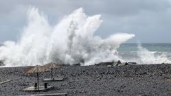 Da das Wetter für heute durchweg gemischt angesagt war, habe ich meinen Ruhetag auf heute verschoben. Das bedeutete, ich habe lange geschlafen, gelesen, die Routen auf Alltrails mit einzelnen Fotos versehen usw.. Als es dann um Mittag rum einigermaßen trocken war, lief ich mal in den Ort runter bis zum Zentrum und dem Steinstrand. Hier boten sich mir gigantische Wellen, die an den Strand brandeten. Nachdem ich mich noch ein wenig im Ort umgeschaut habe, ging es wieder zurück steil bergauf zu meinem Quartier.