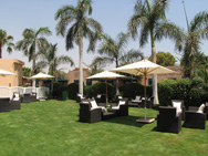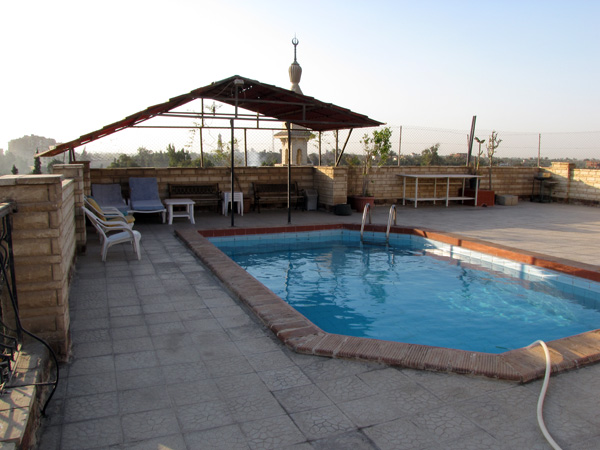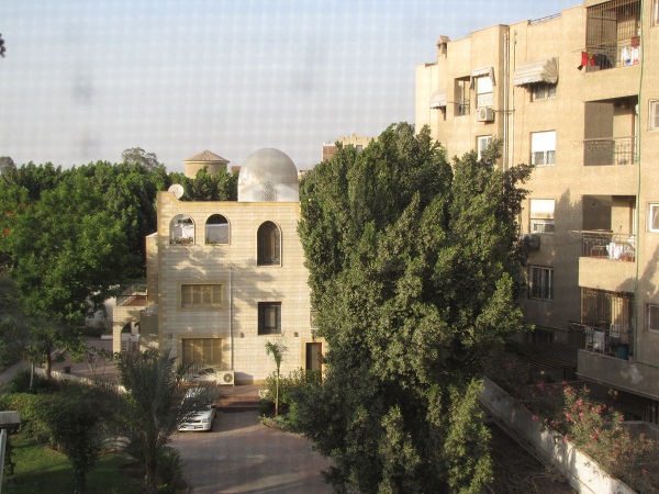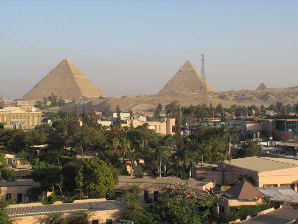 Heute also mein erster freier Tag in Ägypten! Da von Seiten der Ägypter für heute nichts geplant war- sie wollen morgen mit mir zu den Pyramiden- war ich auf mich allein gestellt. Nach einem erholsamen langen Schlaf und einem ausgiebigen Frühstück habe ich morgens den Ort Gizeh auf eigene Faust erkundet. Wenn man auf den Hauptstrassen läuft, wird man alle Nase lang von irgend jemanden angesprochen. Entweder der Taxifahrer, der einem die Stadt zeigen will oder ein Händler, der dir alles Mögliche zum halben Preis anbietet. Auch wenn man gleich kein Interesse bekundet, wird man trotzdem in ein Gespräch verwickelt, woher man kommt, wie es einem so geht und ob man nicht doch etwas braucht. Ich habe dann die Leute meistens vertröstet, dass ich vielleicht morgen nochmal vorbei komme. An den großen Strassen sind auch die Hotels und Geschäfte- Hier sieht alles oft ganz gut aus. Die Nebenstrassen sind aber meistens ziemlich staubig und verdreckt. Überall wird gebaut, allerdings sehen manche Baustellen auch ziemlich verlassen aus. Zum Mittagessen wurde mir das Mövenpick-Hotel empfohlen, allerdings gibt es dort erst ab 12:00 Uhr Mittag. Ich war aber schon eine halbe Stunde eher da, also habe ich es im nächsten Hotel, dem Le Sphinx, probiert. Ich war zwar in einem großen Speisesaal mit Kronenleuchtern an der Decke der einzige, aber es gab schon was. Das Interessante ist, dass man hier für einen Einheitspreis (80 pounds) sich an einem Büfett bedienen kann. Es gab ein Salatbüfett, Reis, Pasta, Lamm, Geflügel, irgend einen frittierten Fisch und ein Extra-Büfett mit Nachtisch. Die Salate haben sehr typisch arabisch geschmeckt, aber ansonsten war das Essen gut. Getränke kosteten extra, so dass ich für Essen, 1 große Flasche Wasser, 1 Espresso und Trinkgeld 120 pounds bezahl habe, also knapp 18 Euro. Nachdem ich wieder zu Hause war, habe ich eine ganze Zeit auf der Dachterasse verbracht, mich in Swimmingpool abgekühlt und gelesen.