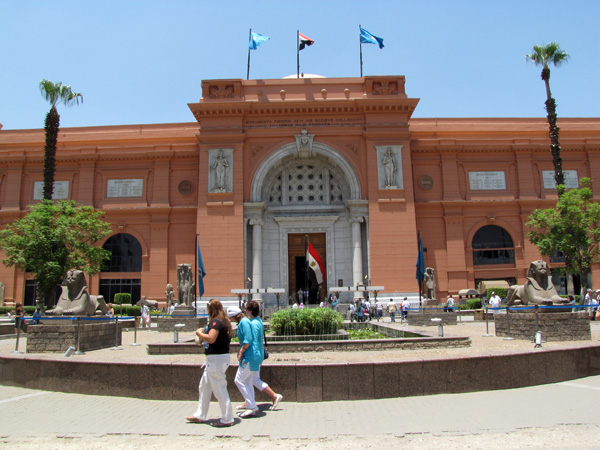 Für heute hatte mir Tahani, die Mutter von Moustafa, ein Taxi bestellt, da ich in die Innenstadt wollte. Ich wollte 09:30 Uhr los, das Taxi war eine viertel Stunde später da. Das ist hier noch sehr pünktlich. Allerdings sprach der Taxifahrer kein Wort englisch. Ich aber hatte gelesen, dass man vor der Fahrt den Preis aushandelt. Das ging hier ja nun nicht. Aber ich dachte, wenn Tahani das Taxi organisiert hat, wird sie das schon irgendwie gemanagt haben. Auf jeden Fall war mein Ziel das ägyptische Museum. Als wir dort waren, zeigte das Taxameter 25 pounds, durch schwupps hatte der Fahrer den Preis weggedrückt und verlangte von mir 50 pounds. Irgendwo hatte ich von max. 30 pounds gelesen, aber er lies nicht mit sich handeln. Um vorweg zu greifen, auch rückzu musste ich 50 pounds zahlen. Ich habe eh festgestellt, Informationen im Internet bezüglich Kairo sind schneller veraltet, wie sie geschrieben sind. Man braucht nur mal sich nach den Öffnungszeiten des Ägyptischen Museums erkundigen wollen. Alle möglichen Uhrzeiten sind da zu finden. Selbst die offizielle Homepage ist kein guter Ratgeber. Sie ist total veraltet. Laut dieser darf man auch noch gegen Aufpreis im Museum fotografieren. Doch leider ist das nicht möglich. Man muss den Fotoapparat sogar abgeben und erhält eine kleine Marke. Über 100.000 Exponate vorwiegend aus der pharaonischen Zeit beherbergt dieses Museum. Dabei muss jedoch jede noch so kleine Nische ausgenutzt werden. Es platzt schier aus den Nähten. Mein Reiseführer (Buch) empfiehlt, sich auf einige wenige Räume zu konzentrieren. Ich bin jedoch durch alle Räume gestreift und habe mir die Empfehlungen dann eingiebiger angeschaut. Alle Räume sind mit Nummern versehen, jedoch war mir der Sinn der Anordnung nicht immer einleuchtend, so dass ich manchmal ganz schön suchen musste. Am beeindruckendsten war der Grabschatz des Tut-ench-Amun. Vor allem sein Sargophag, wie eine Matroschka. Erst kamen zwei vergoldete Holzsarkophage und dann ein Sarg aus massiven Gold. In diesem fand man die Mumie mit der berühmten Maske, welche auch ausgestellt war. Außerdem gönnte ich mir auch ein Blick in den Mumiensaal, obwohl das extra kostete. Dort liegen die Mumien der berühmten Pharaonen, wie Ramses, Thutmosis. Manchmal schon ein merkwürdiger Anblick. Aber wenn man überlegt, was für eine Geschichte da vor einem liegt ... Die Exponate sind teilweise in englisch erklärt. Manchmal musste ich jedoch nachschlagen. Z.B. war bei einer Mumie beschrieben, dass der "scrotum" besonders groß war, weil er eine Krankheit hatte ... Ich vertrieb mir hier im Museum für ca. 3,5 Stunden die Zeit. Anschließend ging ich auf die Fluss-Insel Gesira direkt am Nil. Dort besuchte ich den Cairo-Tower. Von diesem 180 Meter hohen Turm hat man eine wunderbare Rundumsicht auf das pralle Leben Kairos. Anschließend gab es im Cafe mit Weitblick ein Sandwich und Cappuccino. Dann streifte ich noch eine Weile auf der Insel umher, bevor ich versuchte, ein Taxi zu bekommen. Taxis gibt es ohne Ende, allerdings können anscheinend nur wenige englisch. Deswegen winkte ich bei mehren wieder ab. Schließlich war es auch wichtig, dass sie verstehen, wohin ich will. Aber irgendwann fand ich einen, der mich verstand und setzte mich hinten hinein. Jedoch bei diesem Taxi etwas gefährlich, da es zwar hinten Gurte gab, jedoch nichts, worin man diese hineinstecken konnte. Das war dann auch die bisher beeindruckendste Fahrt. Beeindruckend in dem Sinne, was die Fahrer so drauf haben. Wie man sich im total verstopften Straßenverkehr Kairos so schnell fortbewegen kann, ohne einen Unfall zu bauen- alle Achtung!! Da wird geschnippelt, gedrängelt, gehupt und wofür Blinker dienen, weiß auch niemand. Manchmal trennen da nur noch Millimeter vom Auto neben einem. Aber ich bin heil und gut angekommen.