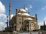Heute hatte mir Tahani einen Fahrer besorgt, der den ganzen Tag für mich da war. Sie bezeichnete ihn zwar als einen Guide, also Führer. Allerdings fuhr er mich immer nur zu den Plätzen, wohin ich wollte und wartete dann auf mich. Ich fand das aber o.k. so, da konnte ich mir in Ruhe das ansehen, was ich wollte. Unterwegs erzählte er mir dann immer ein paar interessante Dinge zu Kairo. Zum Beispiel gibt es eine Insel in Kairo auf dem Nil, auf der stehen eine Moschee und eine Kirche. Die Menschen auf dieser Insel leben unabhängig ihres Glaubens dort wie Brüder, nur das die einen halt in die Moschee gehen und die anderen in die Kirche. Angesehen habe ich mir als erstes die Zitadelle. Auf ihr steht die mächtige Mohammed-Ali-Moschee. Diese ist mit ihren beiden Minaretten das Wahrzeichen Kairos. Bevor man eine Moschee betritt, muss man die Schuhe ausziehen. Manchmal sitzt dann einer dort, der gegen ein kleines Bakschisch Dir dann auch wieder die richtigen Schuhe zurück gibt. Außerdem steht auf dem Gelände der Zitadelle auch noch ein Militärmuseum. Und man hat eine gute Aussicht auf Kairo. Als nächstes besuchte ich die Sultan Hassan- und die Er-Rifa'i-Moscheen. Diese beiden stehen direkt nebeneinander und sind rießige Gebäude. Nun ging es nach Alt-Kairo. Dies ist ein kleine Stadt für sich und ist von den Mauern der römischen Festung Babylon umschlossen. Hier leben vorwiegend Kopten und es gibt eine Reihe von alten Kirchen. Wird das Bild Kairos normalerweise von Minaretten geprägt, begegnet man hier ständig dem Jesus-Kreuz. Interessant ist auch, wie man in das eigentliche koptische Viertel gelangt. Man geht nämlich eine Treppe hinunter wie in eine U-Bahn oder so. Absolut unscheinbar und auf einmal befindet man sich in vielen engen Gassen zwischen den Häuserreihen. Hier steht unter anderem auch die Abu-Serga-Kirche. Diese wurde an der Stelle errichtet, an der die heilige Familie auf ihrer Flucht gerastet haben soll. Dann war ich noch in einer Synagoge und in einigen anderen Kirchen. Die größte war die griechisch-orthodoxe Georgskirche. Was alle gemein haben, sind die Ikonen in den Kirchen. Wenn es Stickereien sind, sind diese wiederum mit einer Plastikfolie geschützt, da die Gläubigen hier die Ikonen berühren oder küssen. Während ich mir Alt-Kairo anschaute, war mein "Guide" in der Moschee zum Gebet. Es war nämlich Freitag und da geht man um 13:00 Uhr dahin. Und es war wirklich Wahnsinn, welche Massen dann aus dieser einen Moschee strömten. Zum Schluss fuhr mich mein Fahrer noch in ein Papyrus-Geschäft, ein Geheimtipp von ihm. Hier werden die Papyrus-Rollen noch nach alter Tratition gefertigt. Nach einer kleinen Einführung in die Herstellung konnte ich mir in Ruhe die Kunstwerke anschauen und bei Interesse auch kaufen. Ach und übrigens war heute der erste Tag, wo ich Wolken am Himmel erleben durfte.