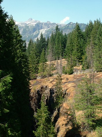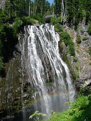Gestern war nix Besonderes los. Vormittags sind wir Vorräte für unsere weitere Reise einkaufen gewesen, nachmittags war Ingolf nochmal shoppen und ich habe mit Jonathan gespielt. Dann haben wir noch ein Hotel in San Francisco übers Internet gebucht, 2 Nächte, 2 Personen für 230 Dollar. Heute gings früh los zum Mt. Rainier. Obwohl es Volker viel Überwindung gekostet hat, sind wir erstmal die Touristenroute abgefahren. Gleich am Eingang zum Nationalpark hat Ingolf die NationalParkCard für 50 Dollar gekauft, damit kommen wir jetzt in alle Parks rein. Nächster Stop war dann Kautz Creek. Man sieht voll, wie der Fluss Bäume und Steine mit ins Tal gerissen hat. Außerdem hat man einen ersten Blick auf den Mt. Rainier, sehr imposant. Weiter gings zu den Narada Falls, ein wunderschöner Wasserfall, indem sich der Regenbogen bildete. Dort haben wir auch Picknick gemacht. Jonathan macht sich immer mehr zum guten Wanderer, die Naturstufen zum Wasserfall meisterte er in einem solchen Tempo, dass mir ganz Angst wurde. Seitdem sagt er zu jeder Wurzel erstmal Angst. Die Reflection Lakes waren leider nicht so klar, sodass sich der Mt. Rainier nicht drin spiegelte, trotzdem auch schöner Blick. Weiter zum Box Canyon. Dort hat sich der Fluss 20 Meter tief in den Fels gegraben. Damit war das Touriprogramm eigentlich beendet. Nun gings zum White River Camp, ein Zeltplatz in der Nähe des Sunrise Visitor Center. Haben sogar noch einen Platz bekommen, obwohl er sehr voll war. Zelt aufbauen und nochmal los zum Visitor Center. Dort Eisessen und kleiner Spaziergang. Jetzt wird noch gekocht und es gibt ein gemütliches Lagerfeuer.
