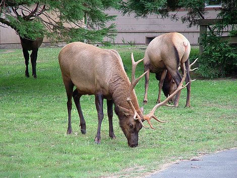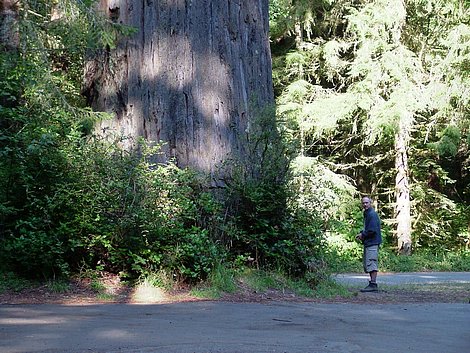 Heute um 7.45 Uhr klingelte Ingolfs Wecker. Es sind jetzt 8 Grad Celsius auf einer Höhe von 1830 Metern. Ganz schön frisch. Nach dem Frühstück sind wir nochmal kurz zum Crater Lake, genauer zum Rim Village Visitor Center. Hatten gehofft, dass die Sicht vielleicht etwas besser ist. War leider nicht so. Also weiter Richtung Redwood NP. Diesmal hats auch mit dem Navi super geklappt. In Cave Junction haben wir dann getankt und waren wieder mal im Subway essen. Zum Tanken noch eine kleine Begebenheit: Ingolf wollte mit Travellerchecques zahlen, die er noch vom letzten USA- Aufenthalt hatte. Dies wurde ein mittleres Problem. Die Frau an der Kasse musste extra anrufen, um den Check zu überprüfen. Das hat dann alles ´ne Weile gedauert, ich dachte schon, Ingolf tut mal wieder shoppen. Gegen 15.30 waren wir dann in Crescent City, und oh Schreck, totaler Küstennebel! Sobald wir aber weiter in die Redwoods reinfuhren, klärte es sich auf. Wollten eigentlich erst zum Klamath Overlook und den Wanderweg an der Küste entlang laufen. Bei der Sicht haben wir das aber gelassen und sind erstmal zum Zeltplatz Elk Prairie. Schnell Zelt aufgebaut und weiter, um die Big Trees endlich von Nahem zu sehen. Dazu sind wir zum Lady Bird Johnson Grove. Dort gibt es einen Rundwanderweg von 1 Meile, die wir dann auch gegangen sind. Wie klein ist doch der Mensch angesichts solcher Riesenbäume. Und dann maßt er sich an, diese auszuhöhlen, um seine Tiere unterzustellen oder sie sogar zu roden! Wahnsinn, diese Baumumfänge. Da sollte man vor Andacht stille werden, durften wir aber nicht! Hingen extra Schilder, man soll in Gruppen gehen und sich bemerkbar machen wegen der Mountain Lions, auf deutsch Pumas. 2 Nachteile hat allerdings dieser Nationalpark auch noch, zum einen bekommt man Genickstarre und zweitens stolpert man durch das nach oben schauen ständig über Wurzeln. Als wir fast am Ende des Rundweges waren, zog der Nebel gerade ins Landesinnere und verwandelte die Landschaft in eine Traumwelt. Unser nächstes Ziel war Big Tree, der größte und dickste Baum in diesem Park. Unterwegs kamen wir noch an einem Wohnhaus vorbei, in dessen Vorgarten 3 Elche in aller Seelenruhe grasten. Das war dann gleich mal die Attraktion! Autos machten Notbremsungen, Amis fotografierten aus ihren "Carsv heraus. Ein Elch kam dann direkt zu unserem Auto und überquerte ganz gemütlich die Straße. Nun sitzen wir am Lagerfeuer und trinken noch einen Tee.