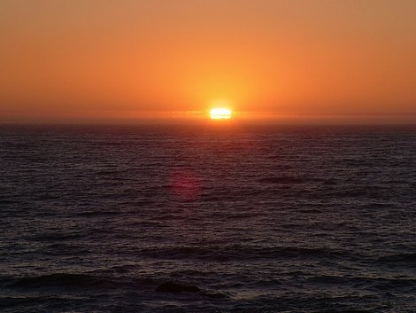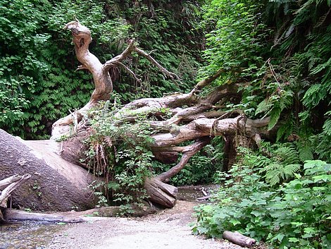 Heute Morgen sind wir zum Fern Canyon gefahren. Die Straße dorthin war wiedermal nicht befestigt und ging teilweise sogar durch Flussläufe, aber für unser erprobtes Auto kein Problem. Dort sind wir einen kleinen Rundweg durch den Canyon gelaufen. Auch sehr schön, die Steilhänge mit Farn bedeckt und viele umgestürzte alte Bäume. Anschließend sind wir noch kurz an den Strand. Da aber das Wetter noch immer nicht so toll war, sind wir bald weiter auf der US101 Richtung San Francisco. Nächster Stop war Eureka, ein etwas größerer Ort an der Küste. Dort haben wir unsere Vorräte aufgefüllt und waren wieder mal bei Subways essen. Unterwegs entdeckten wir noch einen CD-Laden. Es war zwar schon recht spät, aber da auch hier das Wetter nicht toll war, haben wir uns hier noch etwas Zeit gelassen und ein paar CDs gekauft. Nun aber weiter, wir wollten ja noch mindestens auf den HWY1 bis Westport. Gegen 17.30 Uhr waren wir hier und bezogen gleich einen Zeltplatz direkt an der Küste. Und hier war auch das Wetter genial! Wieder nur schnell Zelt aufgebaut und die Steilküste runter an den Strand. An unserer Stelle kam man nur mit einem angebrachten Seil runter, so steil war es. Hier war es dann wirklich wunderschön. Die Brandung, die Felsen und die Seeluft, zum genießen. Unterwegs sahen wir auch ganz viele Seesterne, die sich an den Felsen wie festklammerten. Während ich hier schreib, merke ich, wie kühl es wird. Es sind um 21.00 Uhr noch 14 Grad. Na dann, gute Nacht.