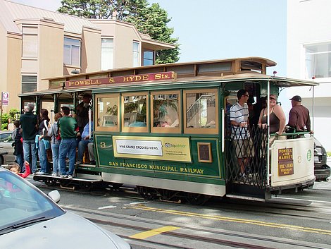 Oh mann, bin ich platt. Sind um ca. 11.00 Uhr am Motel, dem Best Western Flamingo, angekommen. Dank meines PDA (!) haben wir super gefunden. Das Motel ist i.O., mit 2 Etagen, wobei der Zugang zu den oberen über eine Art Veranda ist. Zimmer ist auch gut, großes Ehebett, Dusche, begehbarer Wandschrank, Fernseher und Internetzugang. Nach dem Auspacken sind wir gleich los die Stadt erkunden. Inzwischen hatten wir auch strahlendsten Sonnenschein. Unser Standort ist die Ecke 7thStreet/Missionstr., ziemlich nahe an der City Hall gelegen. Die haben wir auch gleich als erstes angeschaut. In der Hall haben wir die Kuppel bestaunt und die Treppe, wo sich ständig Brautpaare fotografieren lassen. Danach dachten wir, bei dem Wetter wäre eine Sicht auf die Golden Gate Bridge lohnenswert. Also zu Fuß auf der Hyde Str. Richtung Fishermanns Wharf, dem Fischereihafen (inzwischen eher Touristenmeile) von Frisco. Mann, war das anstrengend, ständig auf und ab. Als wir an der Lombard Str. angekommen sind, sahen wir schon mal Alcatraz, allerdings auch wie es sich Richtung Golden Gate schon wieder zugezogen hatte. Also die Lombard Str. runter, das ist die mit den Haarnadelkurven und vielen Blumen zwischendrin. Auch absolute Touristenattraktion. Irgendwann waren wir dann am Hafen und haben als erstes bei Starbucks einen Cafe getrunken, war echt gut. Danach zum Hyde St. Pier, wo ein paar Schaufelraddampfer liegen, riesige Räder. Eine lustige Begebenheit während wir den Hafen entlanggingen: Auf dem Weg hatte sich ein Schwarzer hinter ein paar losen Sträuchern versteckt, die er in der Hand hielt und erschreckte vorbeikommende Passanten. Neben sich eine Büchse zum Geldsammeln! Am Pier 39 sahen wir noch die freilebenden Seehunde, die sich dort niedergelassen haben. Weiter gings zum Coit Tower, einem Aussichtspunkt über die ganze Stadt, aber wie gesagt Richtung Golden Gate Bridge war leider Nebel. Hier schien aber immer noch die Sonne. Man braucht aber immer auch mal wieder die Fleecejacke, da doch ab und zu ein kalter Wind weht. Von dort dann über Chinatown, welche wir aber erst morgen genauer anschauen wollen, zur Market Street und wieder zum Hotel. War ganz schön viel zu laufen. Und das in Frisco, aber hat sich auf jeden Fall gelohnt! Die/das berühmte CableCar haben wir natürlich auch gesehen. Um 19.30 Uhr waren wir wieder da. So, das reicht mal für heute.