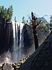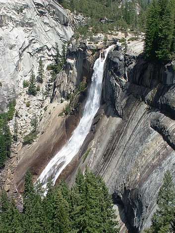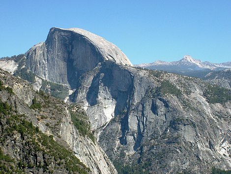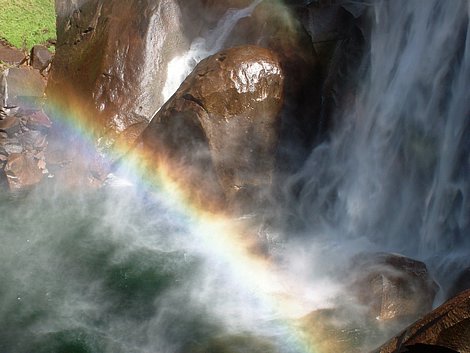 Ingolf und ich haben uns getrennt! Nein, nicht was ihr denkt. Sind heut Morgen mit dem Shuttlebus zur Haltestelle Happy Isles gefahren. Von dort ging dann ein Wanderweg von 2,4 km zu dem Vernal Fall (1510 hm). Das wäre was für Volker gewesen, Touristen ohne Ende! Aber der Wasserfall ist schon Klasse, richtig schön viel Wasser stürzt da runter. Weiter gings dann zum nächsten, dem Nevada Fall, nochmal 3,2 km. Dort gings dann wieder ganz schön hoch, bis auf eine Höhe von 1770 Meter. Aber auch wieder von hier eine bombastische Aussicht. Und der Wasserfall, diese Kraft, mit der sich das Wasser durch den Fels presst! Ich könnte hier 1000 Bilder machen. So, und nun trennten sich unsere Wege, Ingolf wollte noch 'ne große Runde von ca. 14,5 km über den Glacier Point gehen. Das war mir dann doch zu viel. Ich bin dann einen anderen Weg über den Clark Point wieder runter zur Bushaltestelle gelaufen. Der war ca. 7,2 km lang und brachte mir nochmal wunderbare Ausblicke zum Half Dome ein. Danach hab ich mich auf die vergebliche Suche nach einem freien Internetzugang gemacht. Gibt zwar welche, muss man aber zahlen. Zum Abschluß bin ich nochmal zum Fluss zum abkühlen. Ingolf war gegen 19.00 Uhr dann auch wieder da. War begeistert! Morgen wars das dann mit Yosemite, schade.