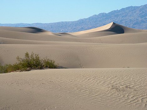 Als wir heute Morgen Richtung Death Valley fuhren, durchquerten wir nochmal auf der Tioga Road den ganzen Yosemite NP. Auch hier einfach traumhafte Gegend. Hier könnte man Wochen zum Wandern verbringen. Aber wir mussten ja weiter, hatten noch 483 km vor uns. Irgendwann im Death Valley angelangt, schauten wir uns erstmal die Sand Dunes, wie ein kleiner Teil Wüste inmitten einer Felslandschaft, an. Dazu gingen wir ein Stück hinein. Allerdings war das schon sehr anstrengend, denn es war tierisch heiß. Unsere höchste Temperatur war 47 Grad Celsius und das um 18.00 Uhr! Dann noch kurz zu der alten Borax -Abbau-Anlage. Sind nur noch Ruinen. Wollten dann zu unserem Zeltplatz. Im Zentrum vom Death Valley gibt es drei. 2 waren geschlossen und auf dem 3., ein sehr großer, waren mit uns gerade mal 4 Zelte. In der Nähe ist auch das Visitor Center, aber das hatte auch schon zu, war wie eine Totenstadt. Jetzt ist es 20.30 Uhr und wir haben immer noch eine Temperatur von 43 Grad Celsius und es weht ein starker Wind. Mann kommt sich vor wie unter einem riesigen Föhn. Aber wie sagt Harald, erfroren sind schon viele, erstunken noch keiner. Na dann gute Nacht.