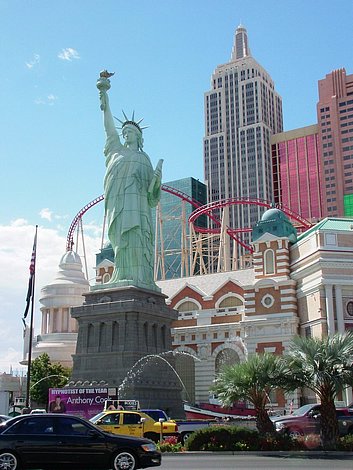 Haben uns gestern schon entschieden, noch einen Tag länger zu bleiben. Heute morgen sind wir erst noch in ein anderes Zimmer umgezogen. In dem alten war die Klima kaputt. War in der Nacht dann nämlich ziemlich warm. Bevor wir wieder loszogen, kühlten wir uns noch am hauseigenen Pool ab. Sind dann erstmal mit dem Bus bis ans südliche Ende des Strips gefahren. Von dort aus sind wir den ganzen Strip hochgelaufen und haben dabei eine Weltreise gemacht. Von Paris über Venedig nach New York. Haben Löwen und Tiger gesehen und tolle Autos wie Hummer, Ferrari, Strechlimosinen und vieles mehr. Eine pulsierende Stadt halt, egal ob Tag oder Nacht.