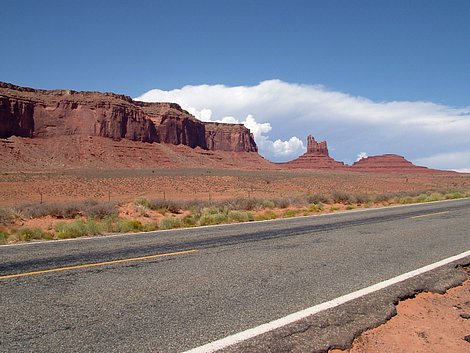 Heute war wieder eher ein Meilenrunterputztag, sind insgesamt 547 km gefahren. Morgens haben wir unseren Rückflug an einem Münztelefon bestätigen lassen. War nicht ganz einfach. Am Anfang muss man sich durch eine Computerstimme, die etliche Vorauswahlen trifft, hangeln. Das ging ganz gut, dann kam der eigentliche Servicemann. Das mit dem confirmed habe ich noch hinbekommen, aber dann hat er was von den seats, also den Sitzplätzen erzählt. Da hab ich gar nichts mehr verstanden. Zur Entschuldigung, erstens waren unsere Umgebungsgeräusche sehr laut, das Telefon hing draußen an der Straße, und zweitens hat der Mann so schnell gesprochen. Ich musste dann an Ingolf weiter geben. Der hat dann nach mehrmaligen Nachfragen rausgehört, dass wir auf dem Flug nach Atlanta nicht zusammen sitzen. Ist ja nicht das Problem! O.k., nach 2 kleinen Stops entlang des Desert View Drive, an denen wir Abschied vom Grand Canyon nahmen, gings weiter Richtung Monument Valley. Dieses liegt mitten im Navajo-Reservat. Die Indianer wissen um die Beliebtheit dieser Kulisse und verlangen Geld, wenn man die Monolithen auch mal aus der Nähe sehen will. Uns haben aber immer mal wieder Stops an der Straße gereicht, um zu staunen und Bilder zu machen. Schon auch sehr interessant, wie auf einer flachen Ebene solche einzelne Felsen gerade in die Höhe schießen. Nun wollten wir soweit wie möglich an den Arches NP ran und sind bis Moab, ein Ort kurz davor gekommen. Direkt nach dem Ortsausgang fanden wir einen super Zeltplatz. Der Portal RV Park ist vorwiegend für Wohnmobile, hat aber 10 Zeltstellplätze. Und ist super ausgerüstet, Duschen und sogar Internetzugang, das für 15 Dollar die Nacht für AAA-Mitglieder. Werden vielleicht gleich 3 Nächte bleiben und von hier aus Arches und eventuell Canyonlands noch erkunden.