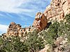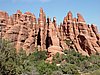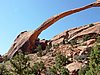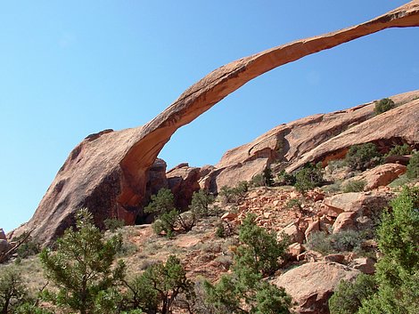 Heute waren wir nun im Arches NP. Ist eher ein kleiner Nationalpark, aber dafür um so feiner. Überall sieht man Steinbögen, Felstürme, Zinnen und Kuppeln, also alle möglichen Formen, die man sich denken kann und mit Fantasie sieht man richtige Gebilde. Beschreiben kann man das nicht. Ich fands einfach nur gei....genial! Nach ein paar kurzen Stops sind wir zum Devils Garden Trail, ein Rundweg von ca. 11,3 km. Dieser führt an verschiedenen Arches (Bögen) vorbei. Beeindruckend vor allem Landscape Arch, einer der längsten freischwebenden Naturbögen der Welt. An manchen Stellen so dünn, man meint, er bricht bald zusammen. Da es wieder mal sehr heiß war, 35 Grad, waren wir danach schon ziemlich kaputt. Haben deswegen Delicate Arch nur vom Viewpoint aus angesehen, obwohl es dahin auch eine angeblich sehr schöne Wanderung gibt. Die beiden Windows, eindrucksvolle Fenster zum Himmel, haben wir auf einem kurzen Rundweg betrachtet. Waren dann schon gegen 17.00 Uhr raus aus dem NP. Kurz noch einkaufen, vor allem kühles Bier. Am Zelt gabs dann noch 'nen Kaffee mit 'nem süßen Stückle.