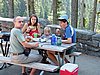Sind heute morgen zu den Upper Falls gewandert. Ziemlich anstrengend wieder. 5,8 km immer steil bergauf bis auf 2020 Höhenmeter. Haben also 830 Höhenmeter überwunden in ca. 3 Stunden. Aber wir wurden auch immer wieder mit herrlichen Blicken auf das Tal belohnt. Und als wir erst oben angelangt waren! Das ist nicht zu beschreiben, das muß man gesehen haben. Auch der Wasserfall selber. Zwar führte er nicht viel Wasser, sodass auch nur wenig ins Tal stürzte, aber oben gab es immer wieder Wasserbecken mit herrlich klarem und erfrischendem Flusswasser, idylisch. Hier haben wir uns auch 'ne ganze Weile aufgehalten, bevor es wieder an den Abstieg ging. Dafür brauchten wir dann nur 2 Stunden. Zur Erholung von unserer anstrengenden Wanderung gings dann noch an den Merced River. Dort haben wir uns im Wasser abgekühlt und am Sandufer gelegen. Nun gibts noch ein kühles Bier und Nudeln.